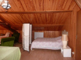 1e verdieping: Toegang via een aparte binnentrap. Eén slaapkamer, laminaatvloer, zichtbare balken en een openslaande deur. Een apart appartement bestaande uit een woonkamer, keuken, slaapkamer, doucheruimte en toilet.