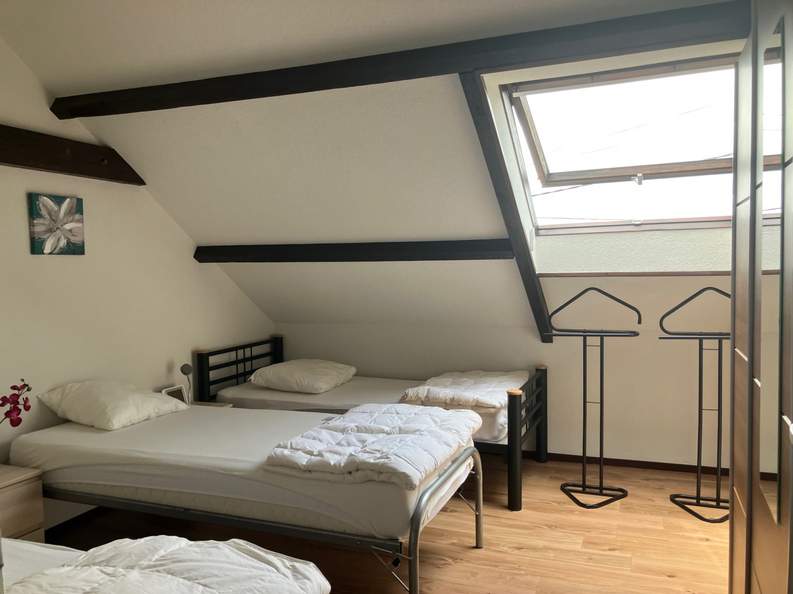4 slaapkamers van 14,10 m2, 13,37 m2, 10,87 m2 en 10,04 m2, houten vloer.