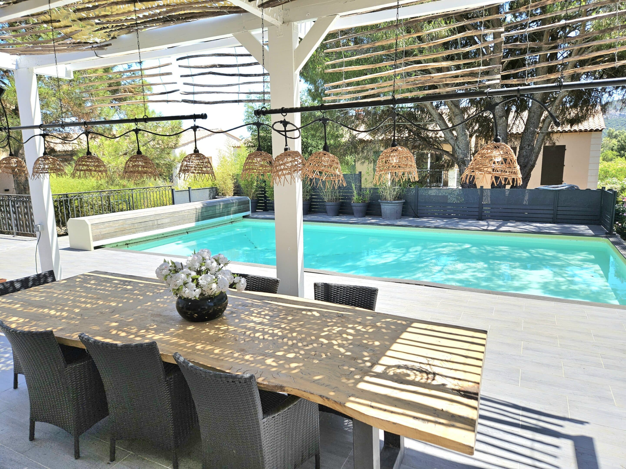 De woning bevindt zich boven Villa des Lunes en beschikt over een familieoppervlakte van 240 m² en een privéoppervlakte van 1.600 m² (10x5m), een bowlingbaan en een badkamer met en-suite badkamer. De villa combineert luxe en comfort met Provençaalse charme, op loopafstand van winkels en restaurants.