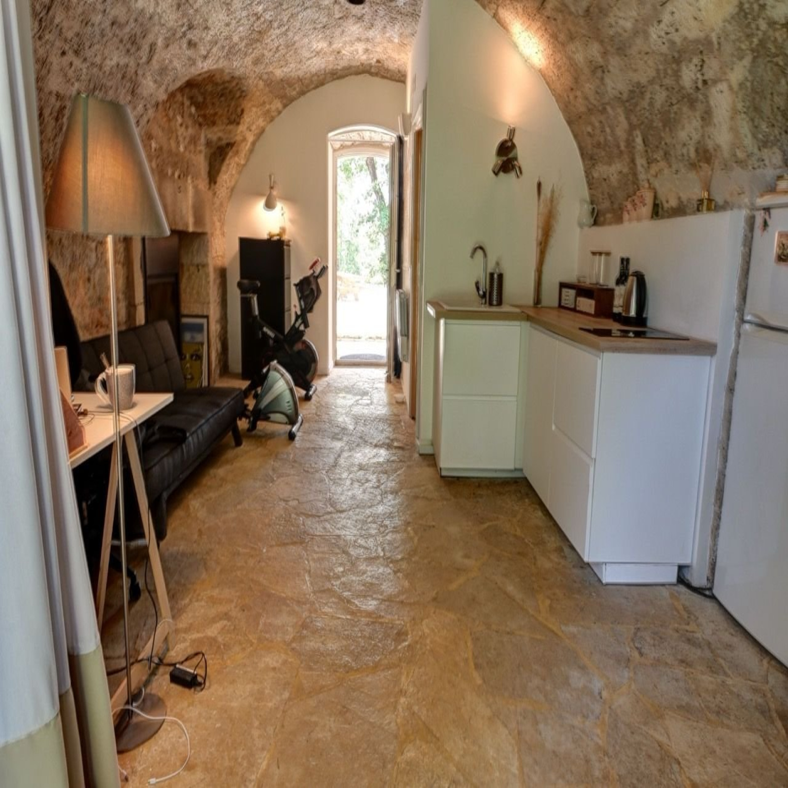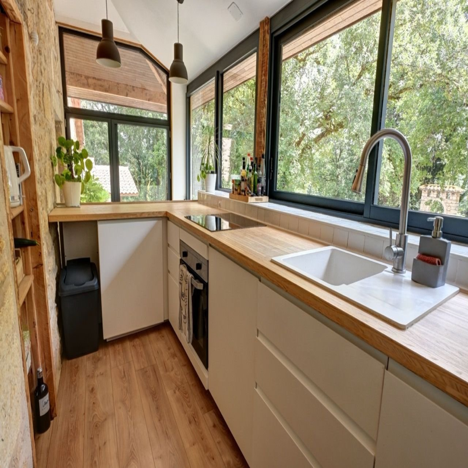 De voormalige schuur herbergt twee appartementen, één met drie slaapkamers en één met twee slaapkamers, elk met een eigen buitenruimte. Aan de overkant van de binnenplaats bevindt zich een derde appartement met twee slaapkamers en een prachtig overdekt terras, waar gasten kunnen genieten van de idyllische omgeving.