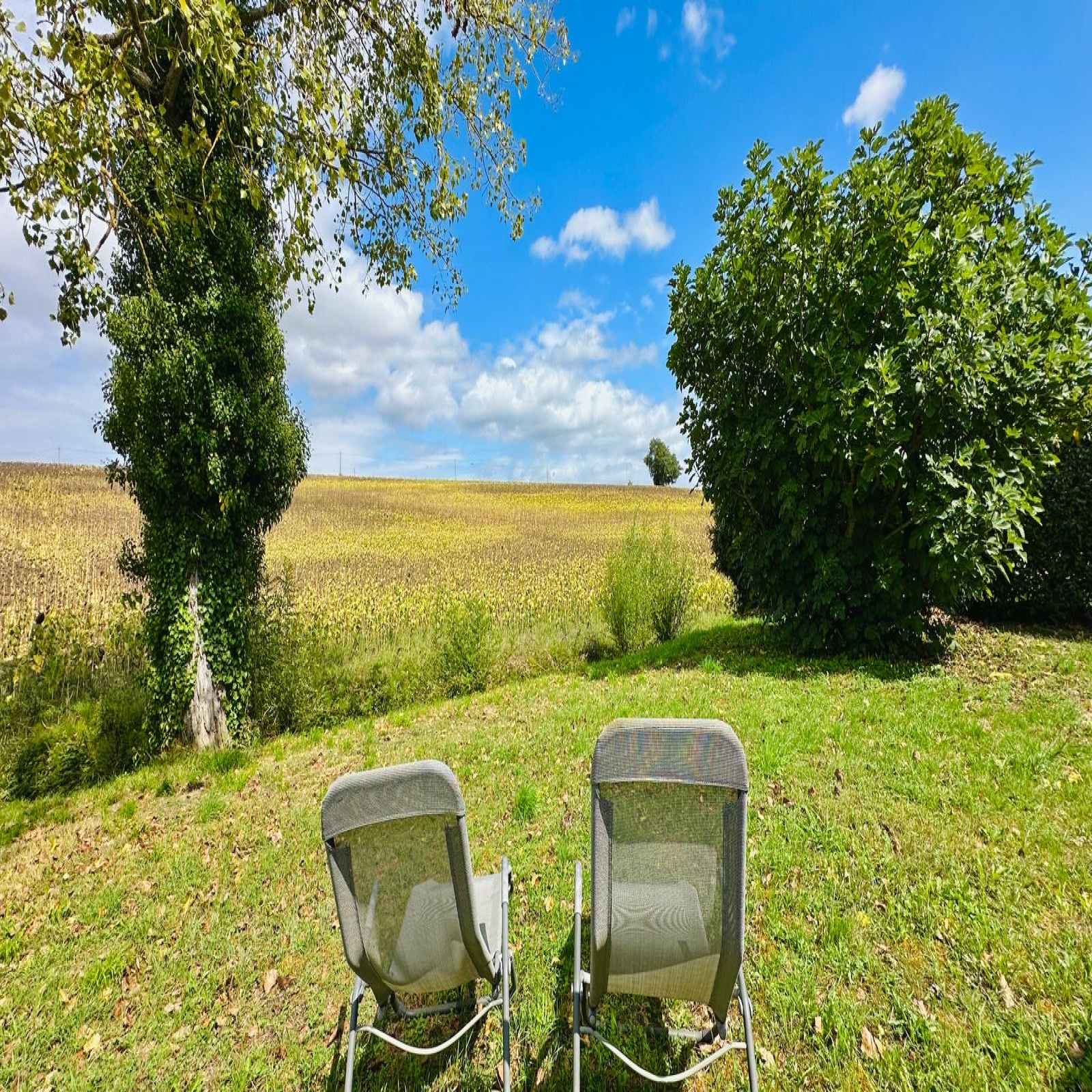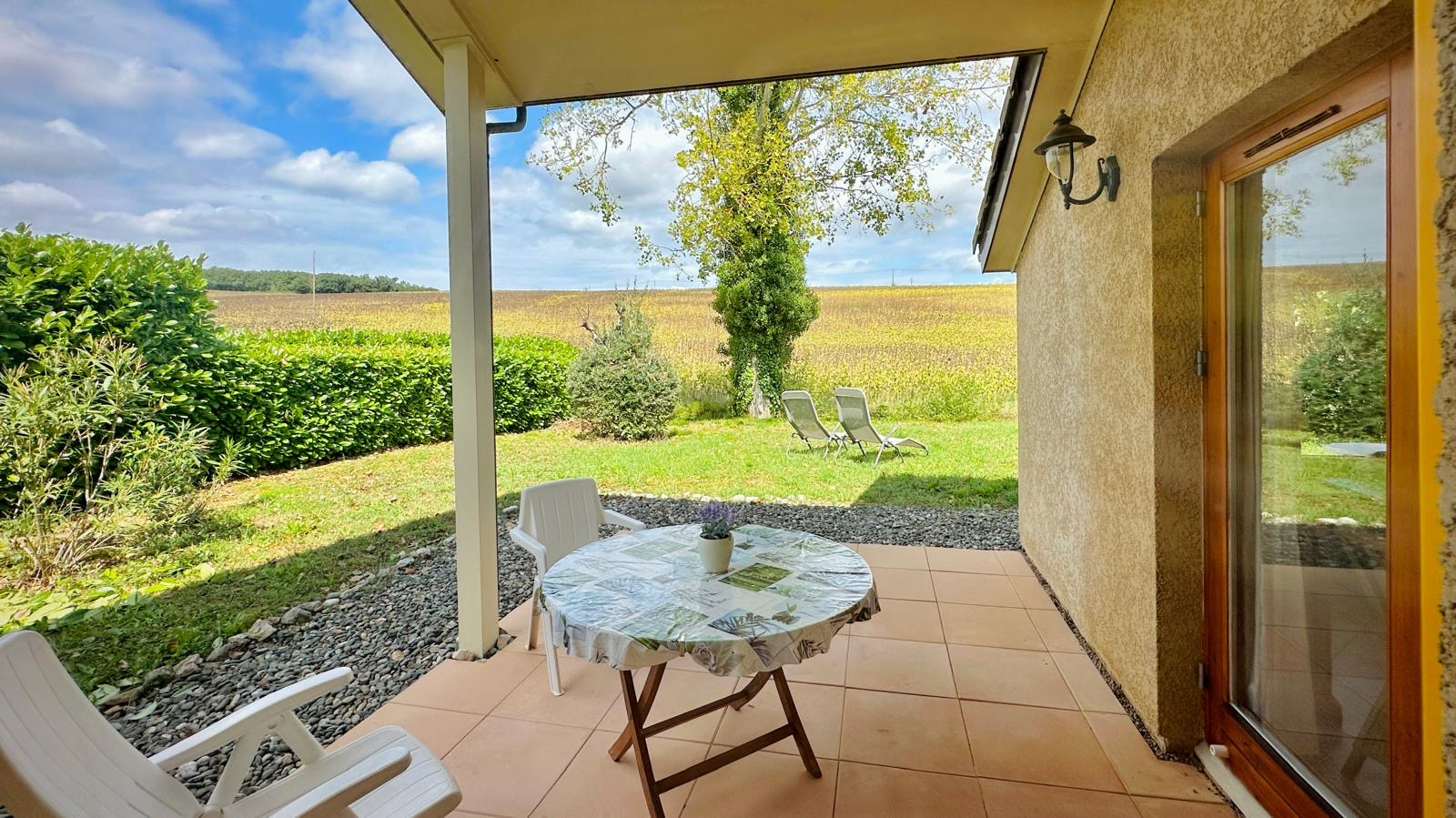 Zonnig terras met vrij uitzicht op de natuur.