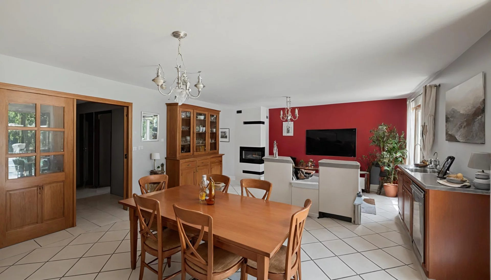De keuken is apart en heeft een aangrenzende voorraadkast voor extra gemak.